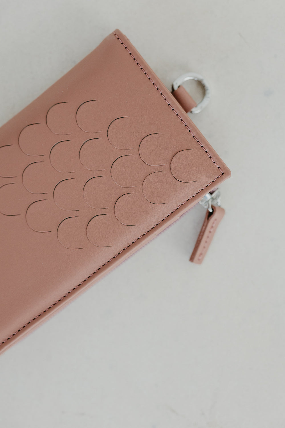 This compact wallet fits easily into a clutch, belt bag or small bag and can be attached to a keychain clip.