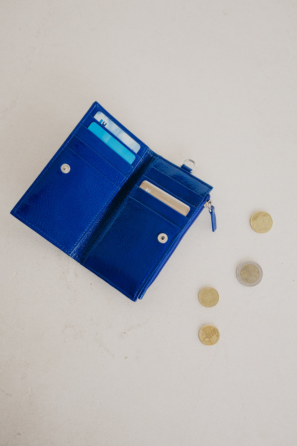 This compact wallet fits easily into a clutch, belt bag or small bag and can be attached to a keychain clip.