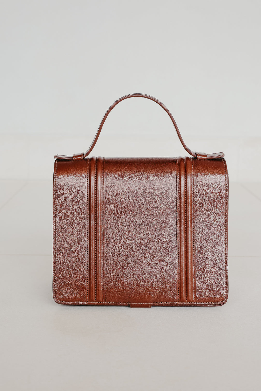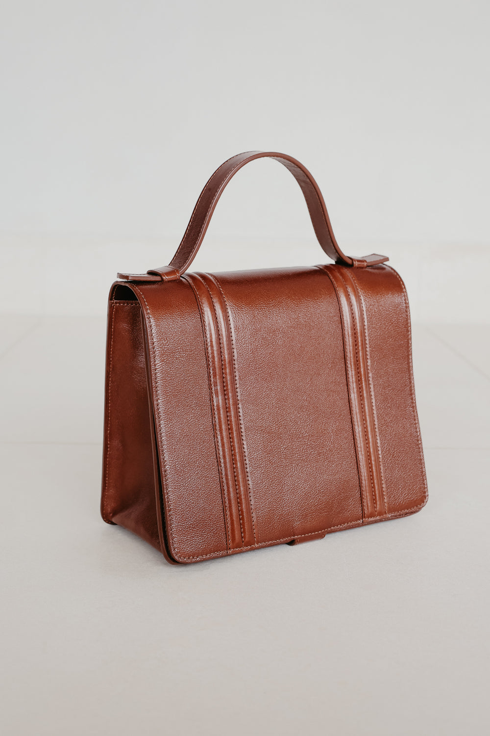 Mini Bowling Bag | Stitched Tricolor Cognac