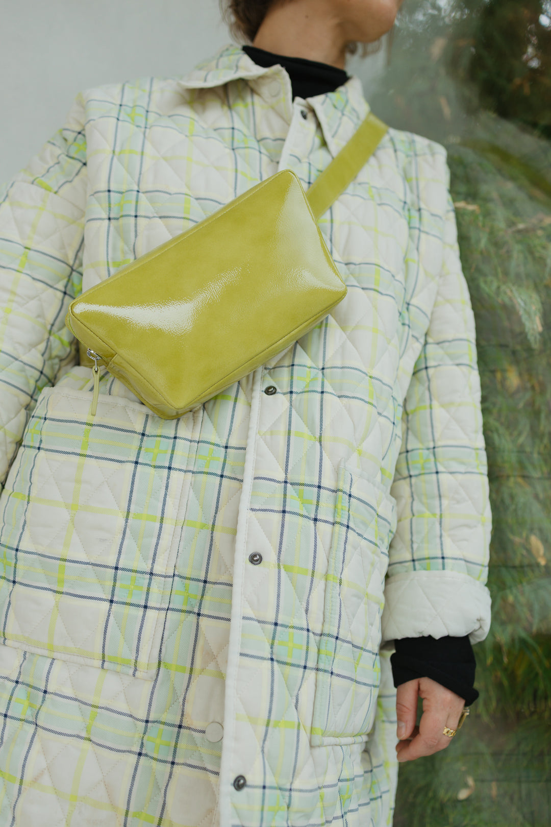 The Belt Bag: Half Moon Stitched Lime/Ebony Structured + Belt XL Stitched Lime/Ebony Structured