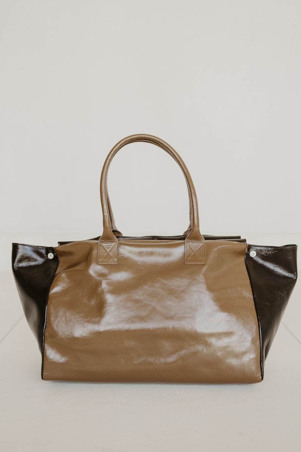 This is an ideal, spacious shopping bag. You can easily shape the bag with two snap buttons.