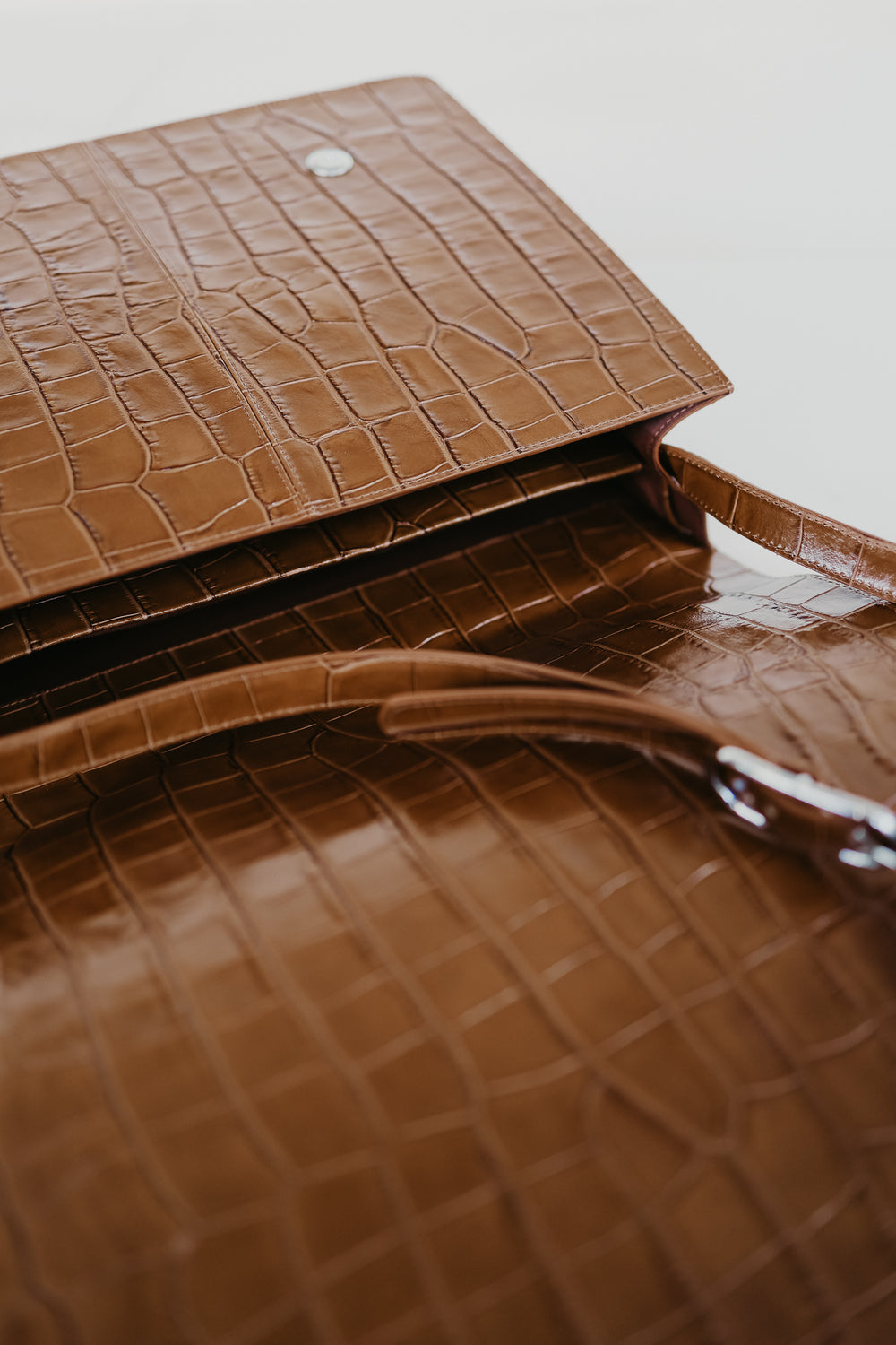 Midi Briefcase 2.0 | Cognac Croco Glans