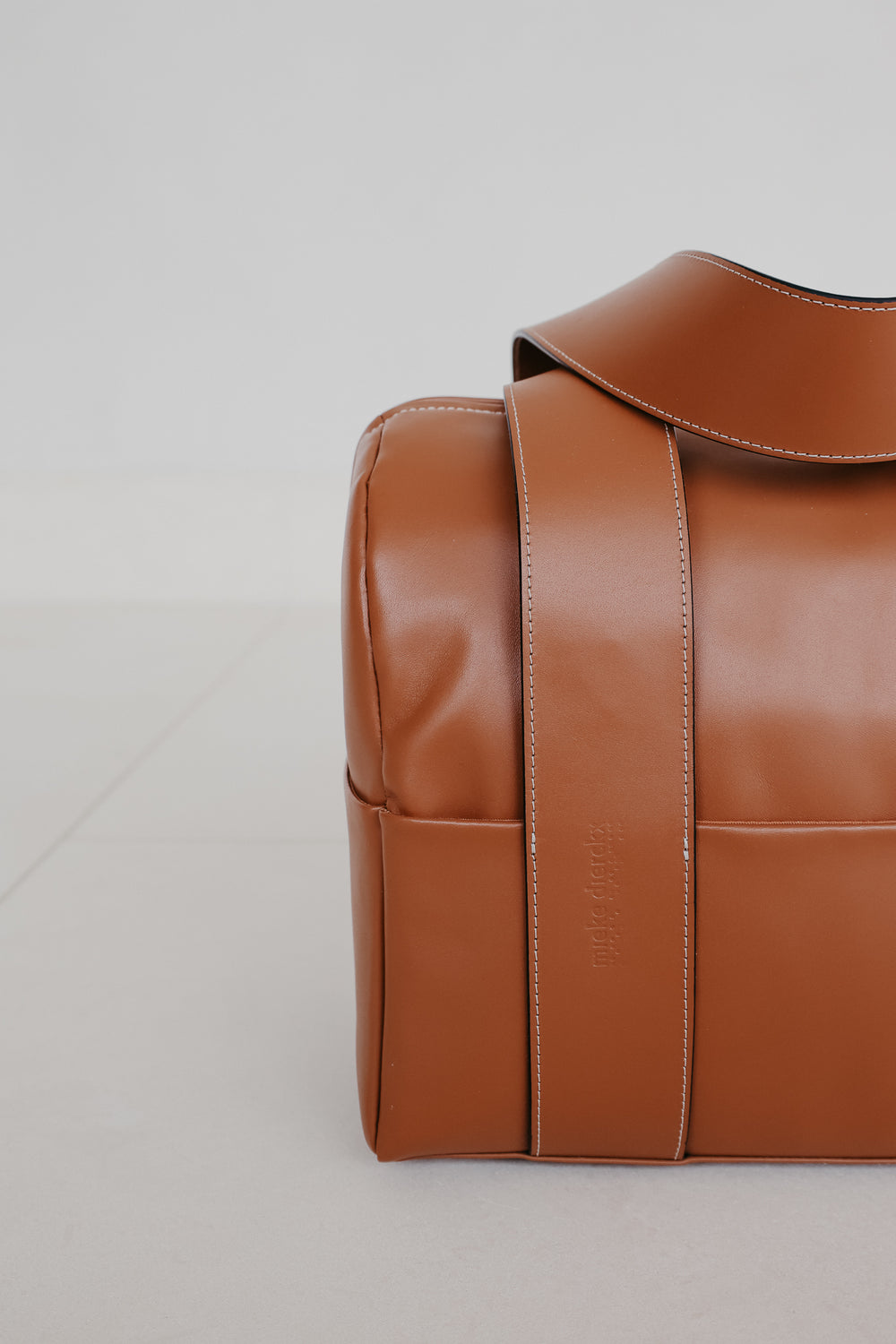 Mini Bowling Bag | Stitched Tricolor Cognac