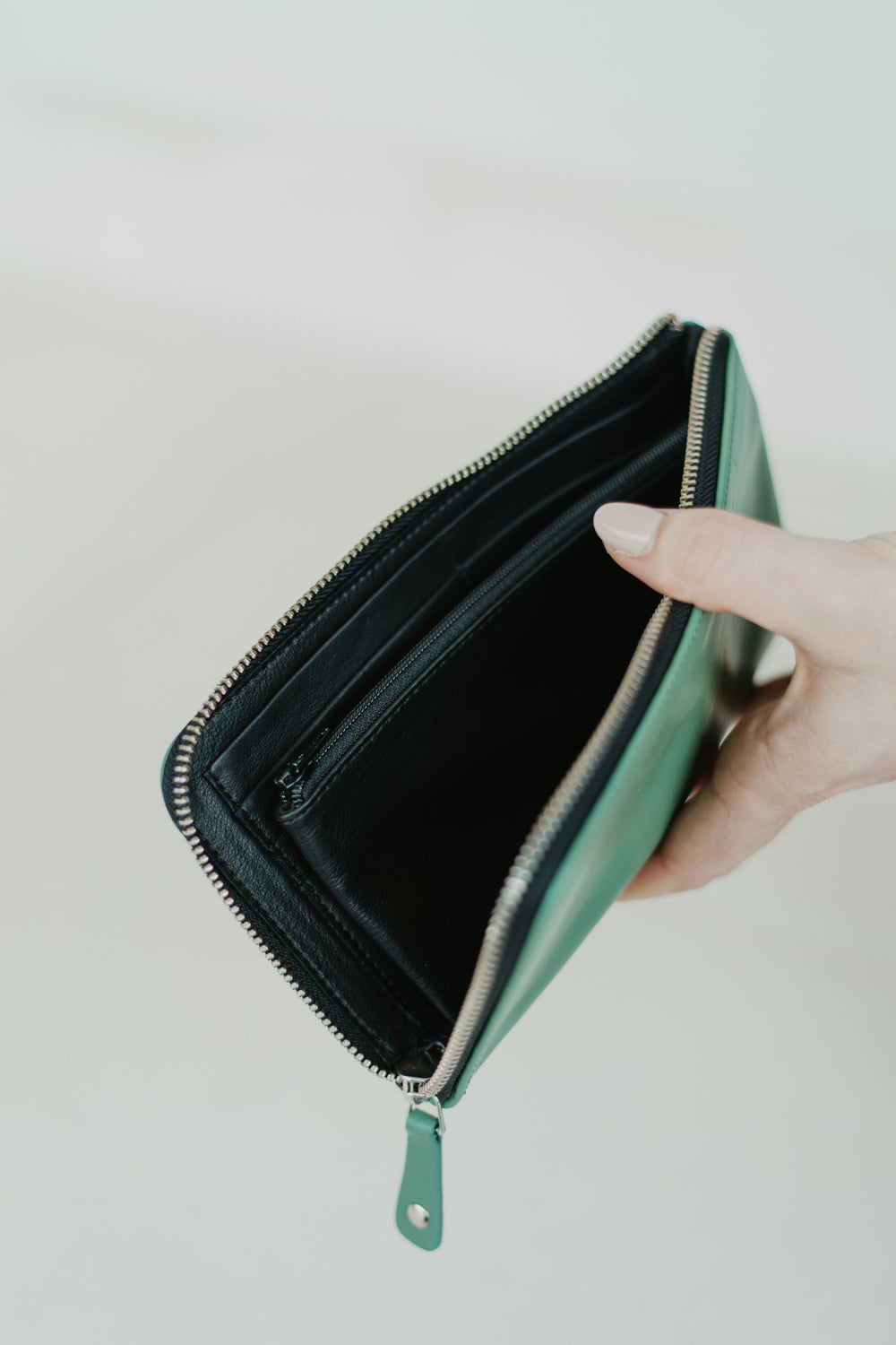 - Compartment for small money with zip closure.